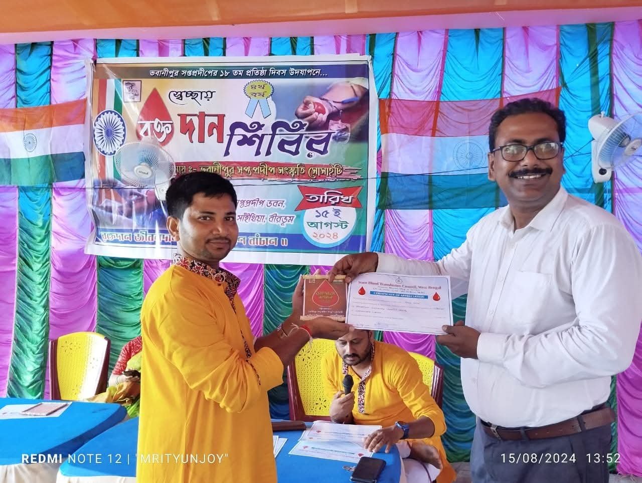 With more than twenty years of cultural service, Bhabanipur Saptoprodip Sanskriti Society has produced over thirty theatre productions, including children’s plays and full-length performances. The society has successfully organized district-level and state & Central supported theatre festivals and workshops, earning recognition from cultural bodies and government institutions. Its consistent efforts have helped build a strong cultural platform in Birbhum and beyond.