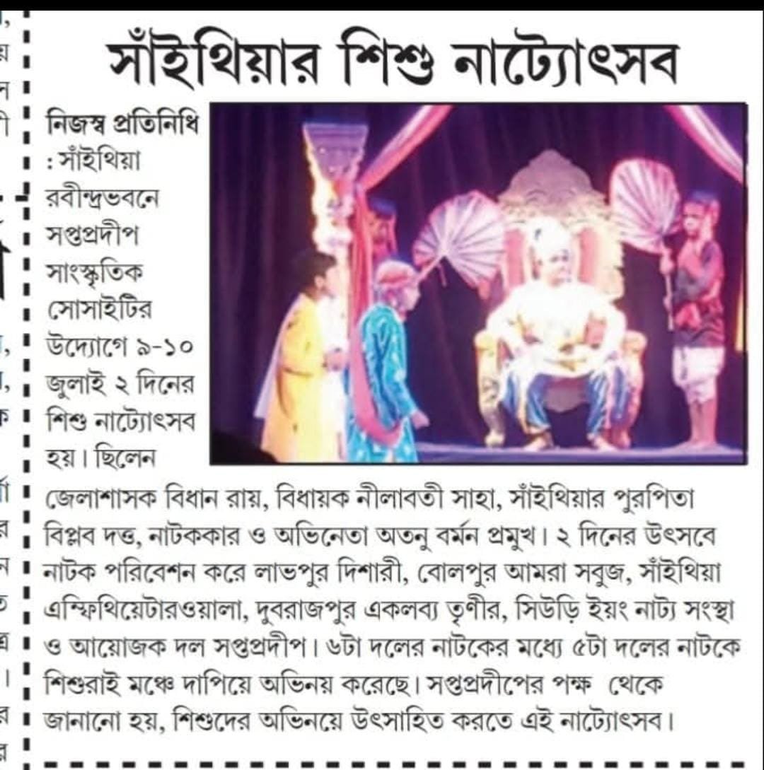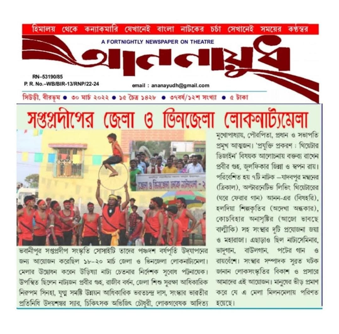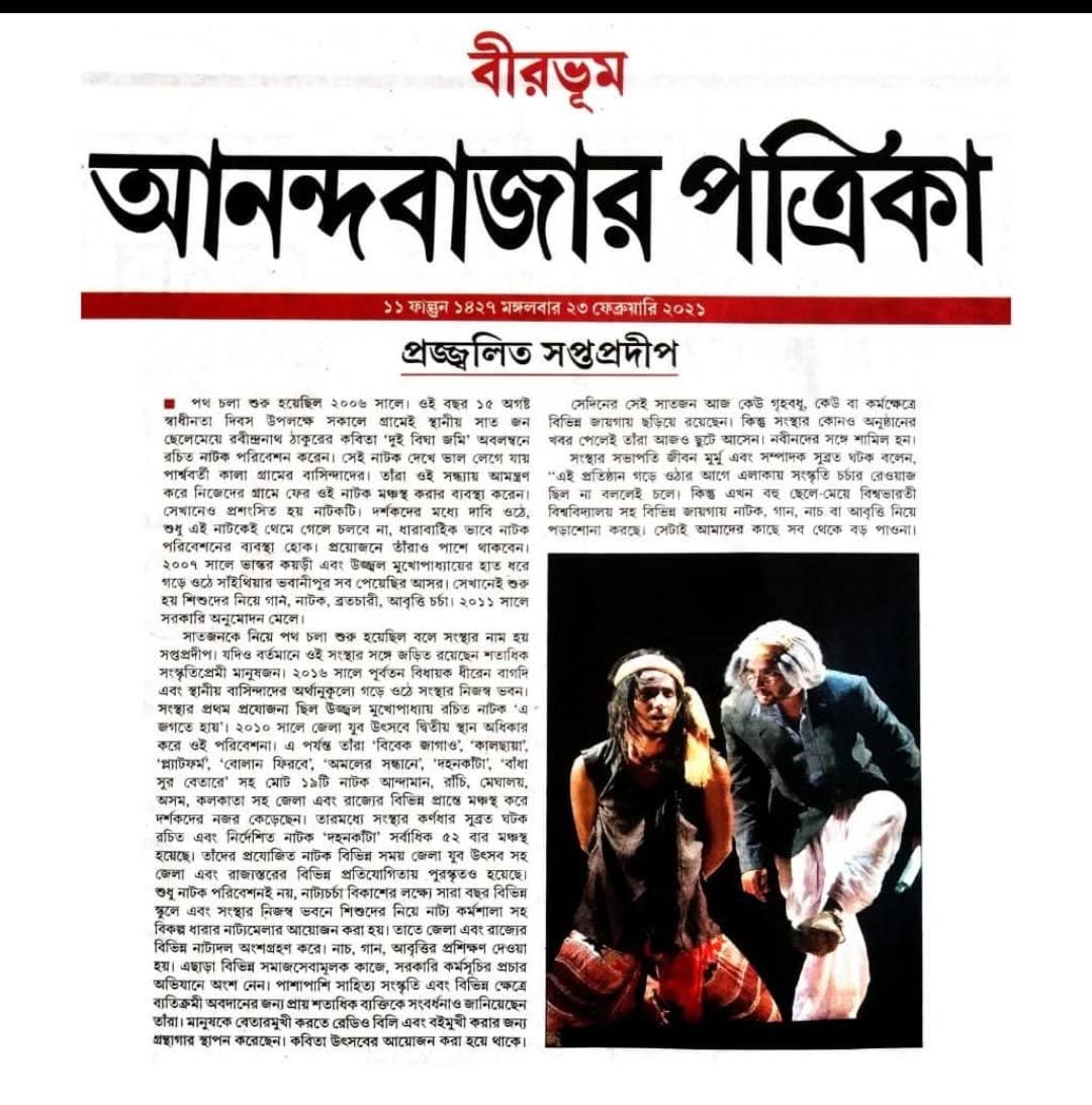 Bhabanipur Saptoprodip Sanskriti Society was established on 15th August 2007 at Bhabanipur, Birbhum, West Bengal. The organization started with a small group of culturally motivated individuals with the aim of promoting theatre, culture, and social responsibility within rural and semi-urban communities.